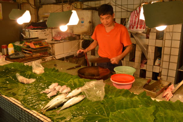 更に奥へ行くと果物屋さんがあり、突き当りを折れると鮮魚店。売れ行きは上々のようで、10時半の時点でほとんど残っていませんでした。