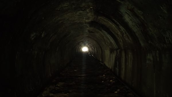 そのまま真っすぐ進むと唐突に舗装がなくなり、草木に覆われ進めなくなったので引き返すことに。ところがその途中で左手にトンネルがあるのを発見、ここは封鎖されていないので通れるようです