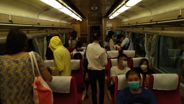 ところが直前になって最も終着駅の到着時間が遅い521次を最終列車と定義し、様々なイベントが行われると発表され(実際かなり間際になってから企画されたとのこと)、その目玉としてラウンジカーが連結されるとあります。これは一度乗ってみたかった車両で、即516次をキャンセルし521次を取り直し乗ってきました。