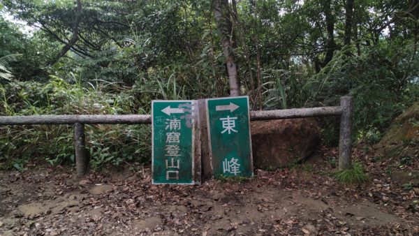 そのまま進むと石碇老街近くの登山口へ出ることができますが、今回は引き返し東峰へ向かいます。分岐点まで戻り右手の岩場を登って尾根筋へ
