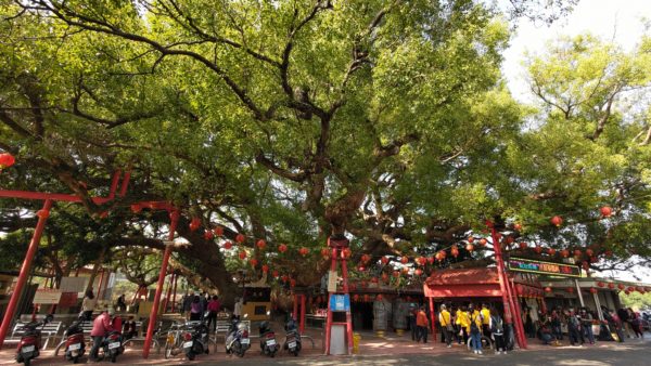 当日私は麗寶樂園からUbikeで出発、10分も走らないうちに小さな森の下に鎮座する廟が見えてきました。しかし近づいてみると驚くべきことに森などではなく一本の大樹だったのです