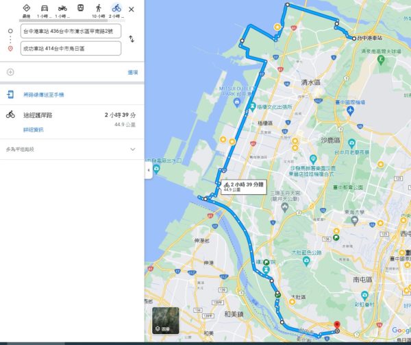 地図上ではこのような感じ。台中港駅を起点に成功駅まで向かいます