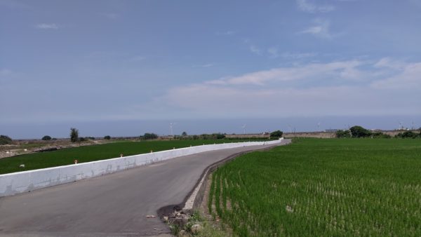 田んぼの中を曲がりくねりながら進む道は台東の観光名所伯朗大道のよう
