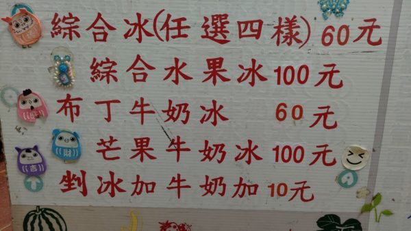 ご飯を食べたら次はデザートです。暑いですから(撮影は8月)冷たいものがほしいところ。Google先生に尋ねたところロータリー近くに2軒あると出ました。そのうち東美冰菓室へ