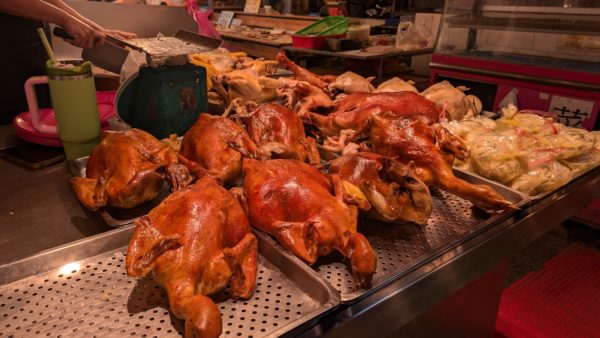 続いてもう一品。中央付近に鶏肉・鴨肉の店が何軒があって美味しそうだったのでこちらも購入することにしました