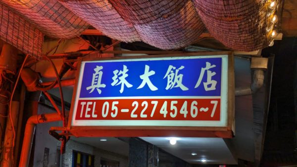 嘉義に以前から気になっていたレトロなホテルがあり、泊まりに行ってきました。ホテルがあるのは嘉義市の市街地中心部、中央噴水池あたり。少し路地を入ると42年の歴史を誇るこれまたレトロな商店街、中央第二商場の看板に乗っかって珍珠飯店の看板もあります