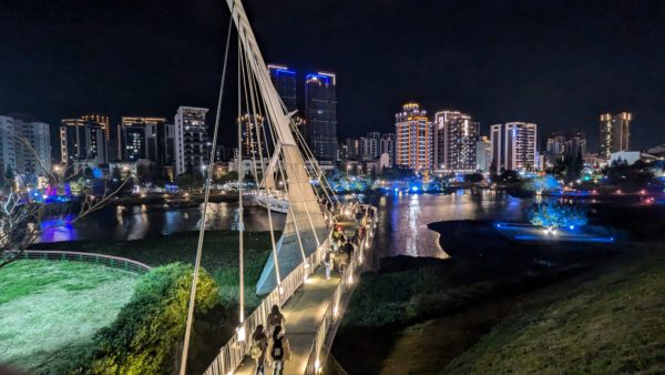 橋を渡り反対側へ。ランタンはなくとも普段から夜景が綺麗な公園のようです