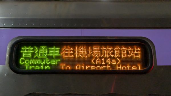 見終えて電車に乗ろうと駅へ行くとレアな光景に遭遇。普段は15分間隔のところ限界まで大増発されています。行き先も普段は見られない「第1ターミナル行き」「空港ホテル行き」などレア物ばかり