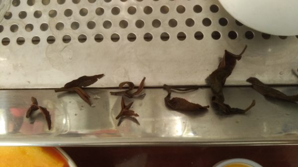 早速座って試飲させていただくことにしました。実は峨眉地区では東方美人茶以外にも様々な茶が栽培されているのですが、やはりここはお目当ての東方美人茶を頂くことにします。150g600元のと800元のがあるけどどっちにする?と聞かれましたが、いきなり高いのを飲むと基準が上がってしまうので600元の方でお願いしました。