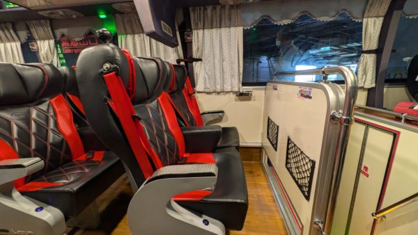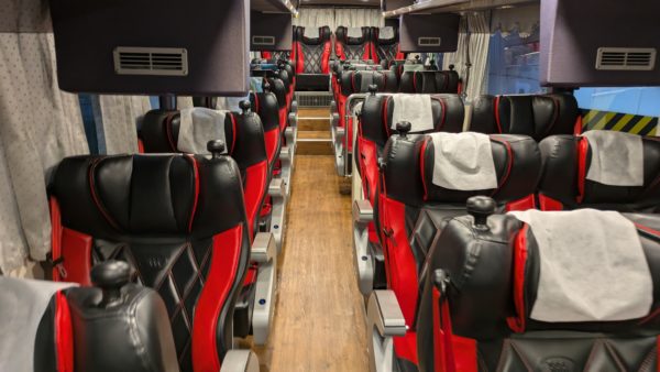 車内に入ると赤と黒のシートでびっくりしました。國光は青シートのイメージだったので印象がかなり違います