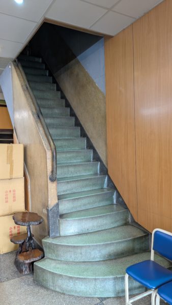 2階に続く階段もレトロ