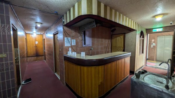 これまた正統派の受付カウンターですが、その向かいには見慣れないものが…