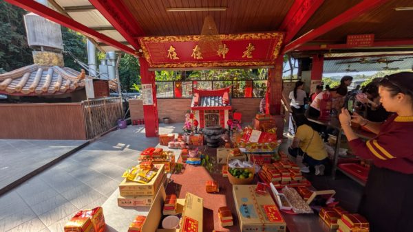 土地公(土地神さま)は非常に小規模なことがほとんどですが、ここは立派な牌樓があり車がどんどん吸い込まれていきます。警備?誘導?の人もいました