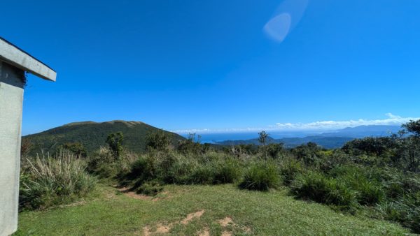 磺嘴山山頂に到着。ここでお昼にしました。実はこの先にも火口を周回するコースがあるのですが、ご覧の通り完全に草に埋もれていて道自体がわかりません。