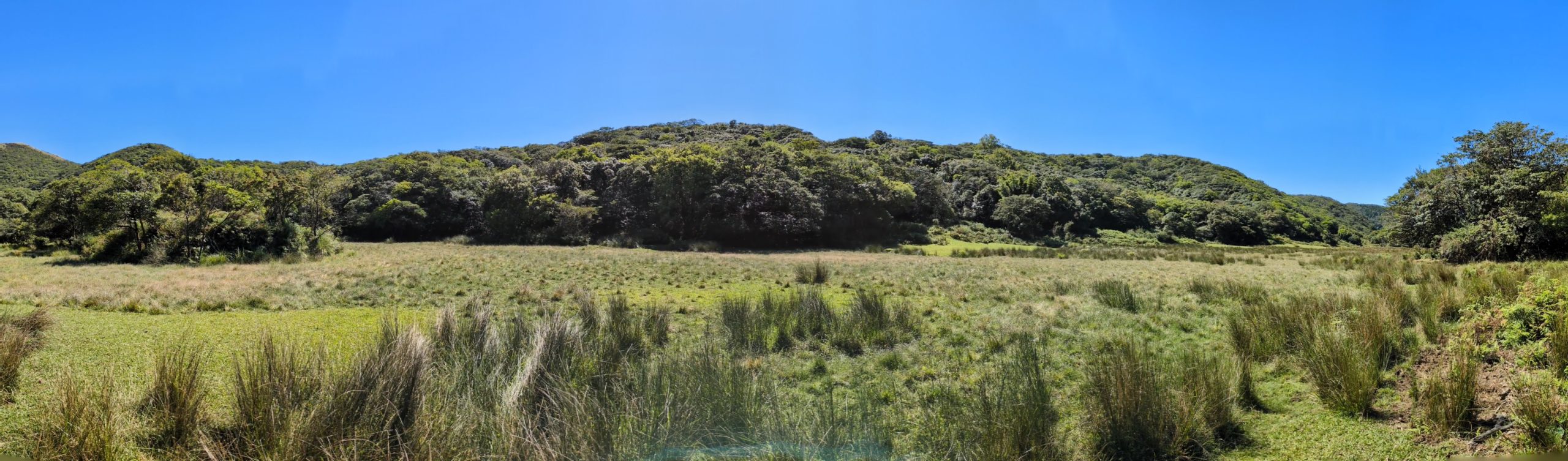 普通に歩けそうに見えますが、湿地なので足元がぬかるんでいて油断するとハマります。あまり奥には行かないようにしてパノラマ撮影してみました