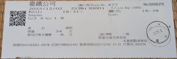 2025年12月いっぱいで郵便局窓口での台鐵乗車券発売を終了するとの発表がありました。以前は主要な購入方法の一つでしたが、近年はコンビニ発券やチケットレスの普及で発売実績が大幅に落ち込んでいる上、有価証券である用紙の管理をきっちりしなければならないなど現場の負担になっているのが理由とのこと。