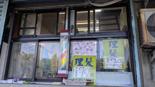 理髪店がありました。まさかここから頭を突き入れてカットしてもらうわけではなく、入口は反対側にあるのでしょう。通常カット170元、坊主頭は割引で100元