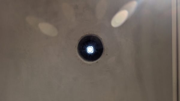 案内してくれた方より上を見てくださいと言われ、頭を上げてみるとそこにははるか上まで通じて光が差し込む筒が。これは通気口とのことですが、このサイズで十分だったのでしょうか?