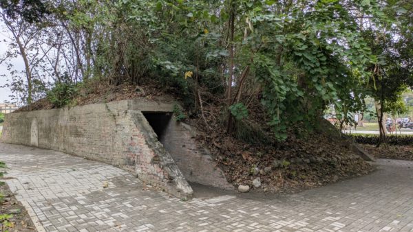 今度は緑のトンネルの反対側へ。こちらも防空壕ですが先程紹介した亀型のものより圧倒的に大型です。上級士官用で司令部も兼ねていました