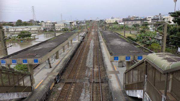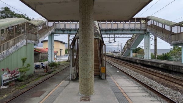 宜蘭線でよく見かける歩道橋スタイルの跨線橋。ご覧の通り2面2線で待避線はなし