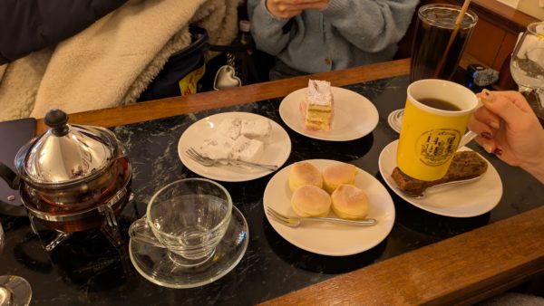 我々が注文したコーヒー&お茶とスイーツ。やはりロシア風のお茶やスイーツがメニューにあるのが特徴でどれも美味しかったです。お茶とスイーツで一人400元くらいでした