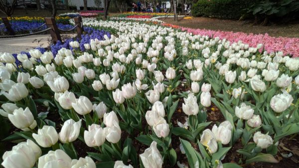 入口付近にはチューリップの大河