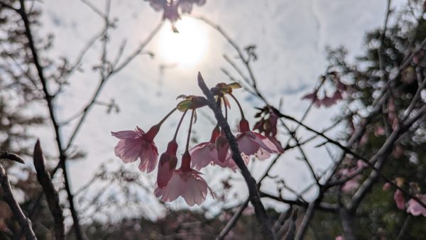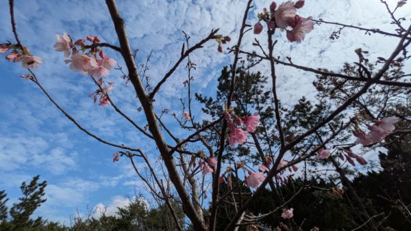 そこに植えられていたのは桜。訪問は1月中旬ですがもう開花しています