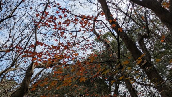 と春を感じながら別の場所へ移動するとそこには秋が。日本のモミジとは違うようですが葉の形が似た木が紅葉しています