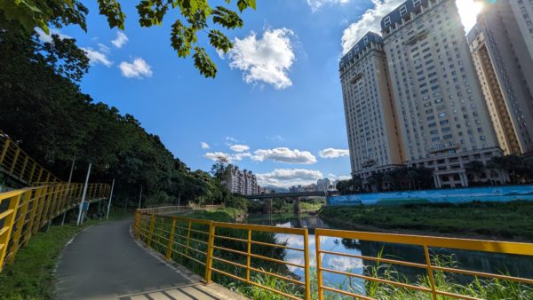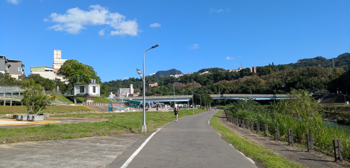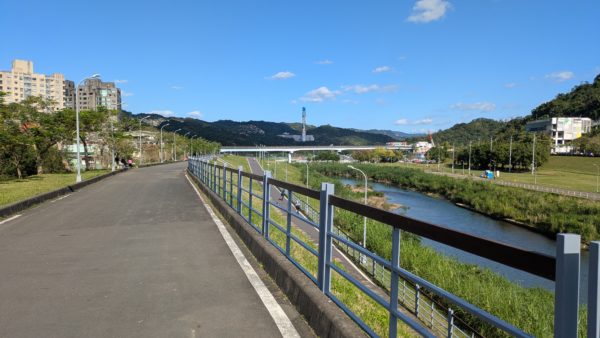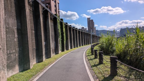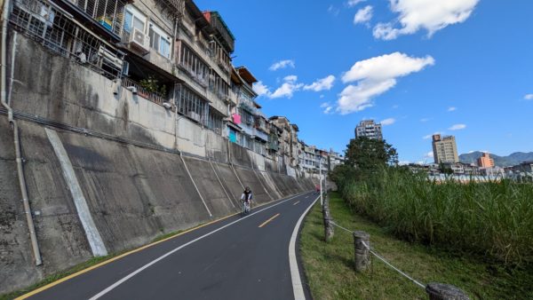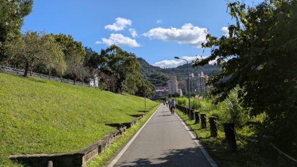 川と住宅の間を走るのは台北と同じですが、こちらはサイクリングロードというより散歩道の雰囲気