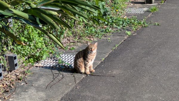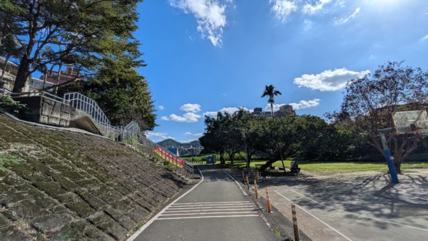 少し進むと山は姿を消し住宅街になりました。このあたりはブロックを積み上げたようなゆるやかな擁壁ですが