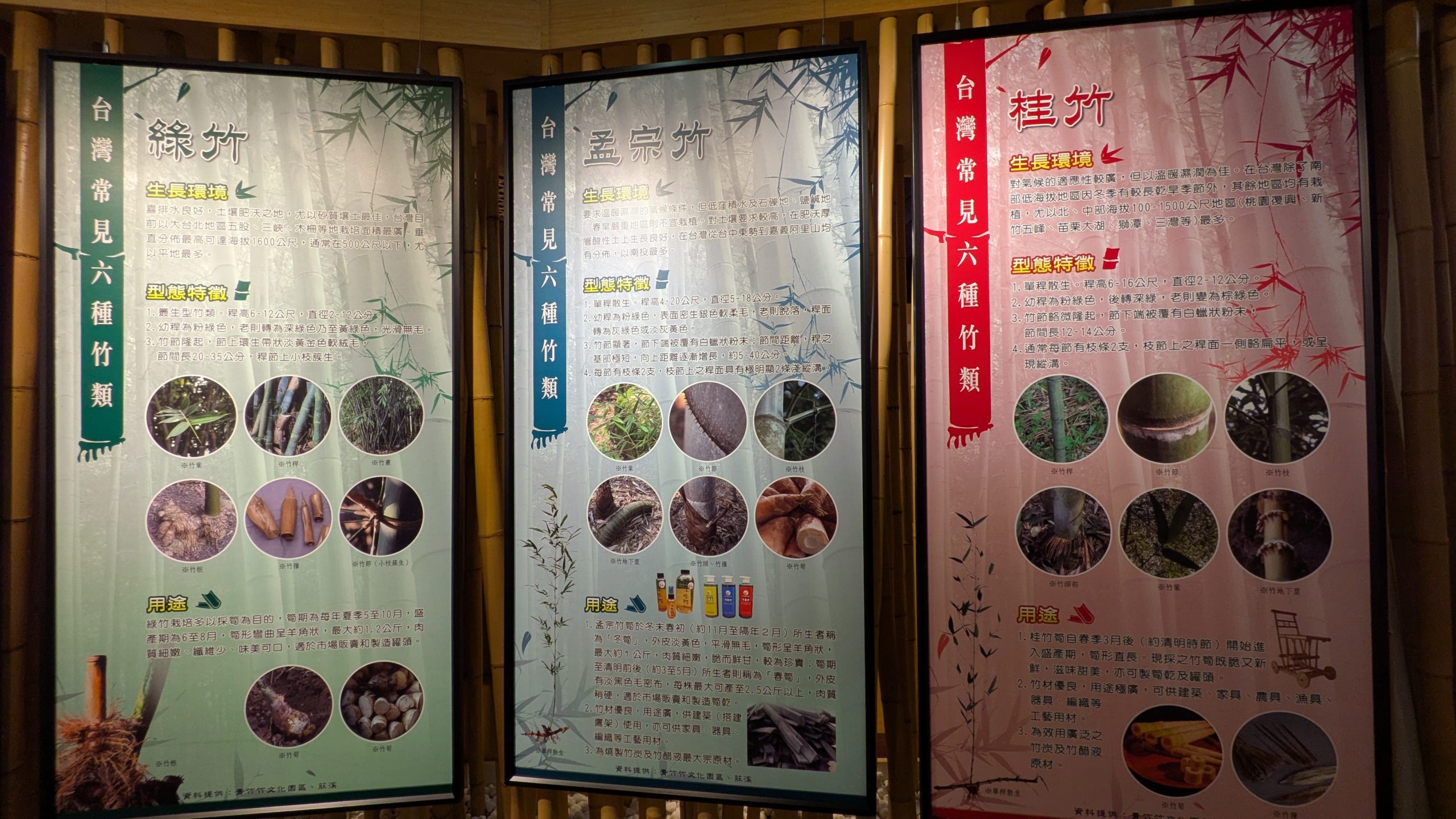 竹細工を見る前に竹の品種解説コーナー。普段は細い竹と太い竹くらいしか認識していませんが、台湾では主に6種類の竹が生えているとのこと