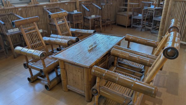竹製テーブスと椅子。ちょっと重そうですが。ここで茶藝をやったら雰囲気があってよいかもしれません