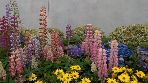 手前の花壇にも様々な花が植えられています