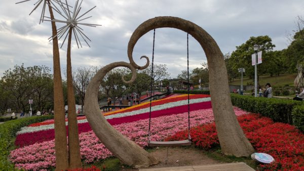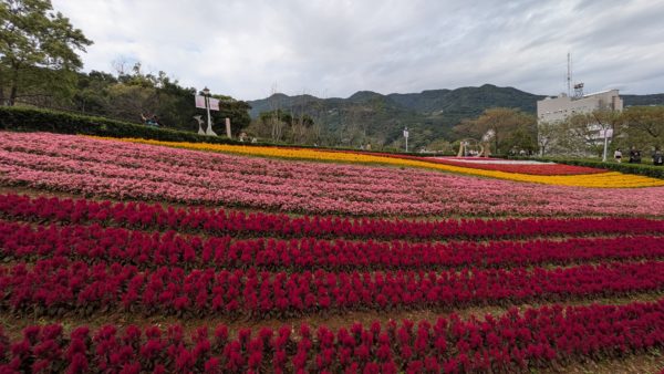 市の広報的な冊子を眺めておりますと市内各地のお花見情報が載っており、そのうち一つが北投社三層崎公園でした。2月中旬~3月中旬にかけて花海が見られるとのことで、そちらを見に出かけて参りました。