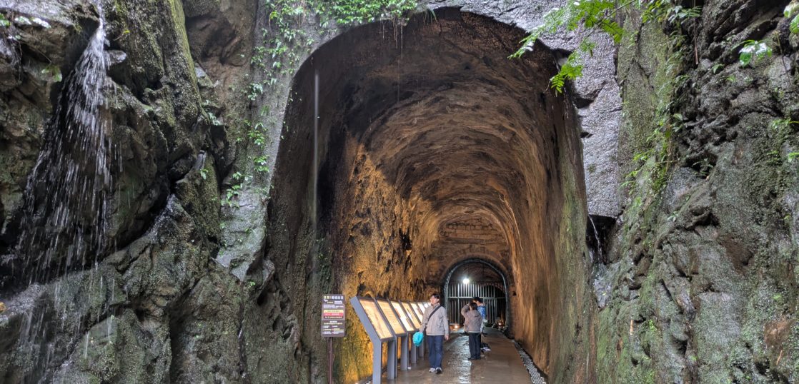 200m強のトンネルですが、途中で3回も構造が変わっています。文献が残っておらずその理由は不明ですが、地質に合わせたためなどと推測されています。