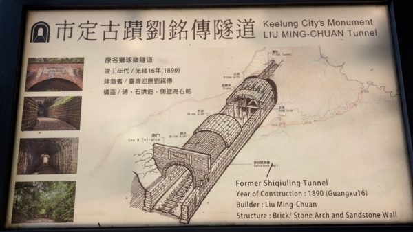 劉銘傳隧道は基隆市にある鉄道トンネルの古蹟です。台湾における鉄道トンネル建設第一号で、名称は建設者である劉銘傳からきています。劉氏は臺灣巡撫という役人で台湾省統治のトップ、後の台湾省長に相当する地位となります。