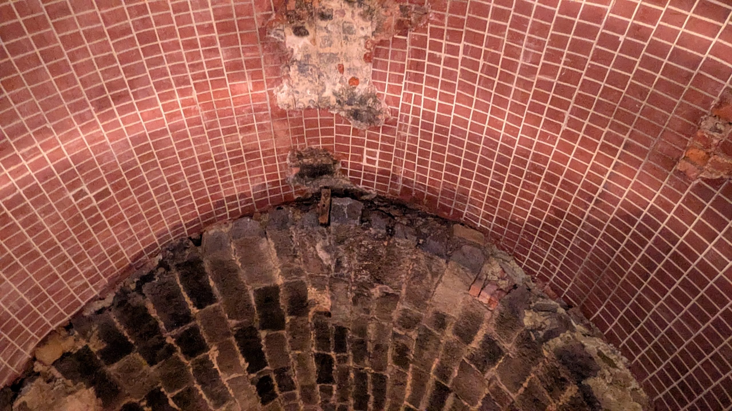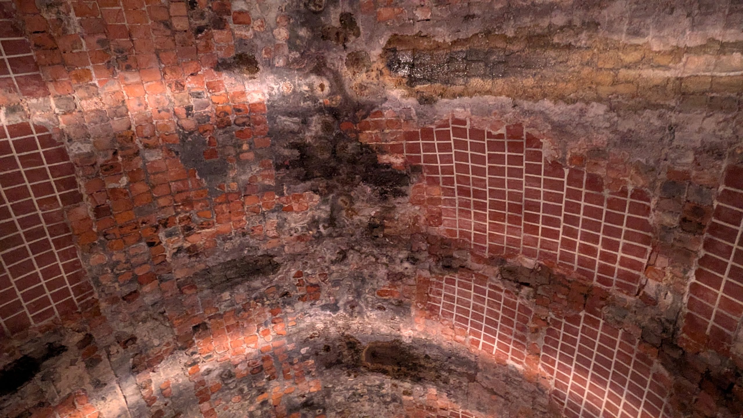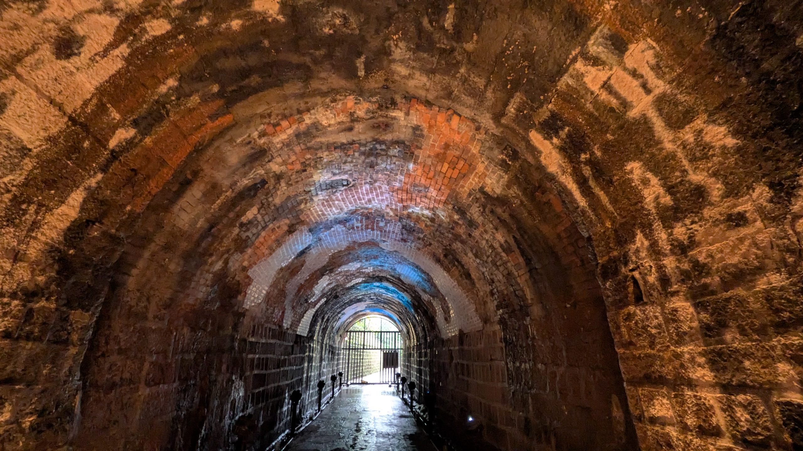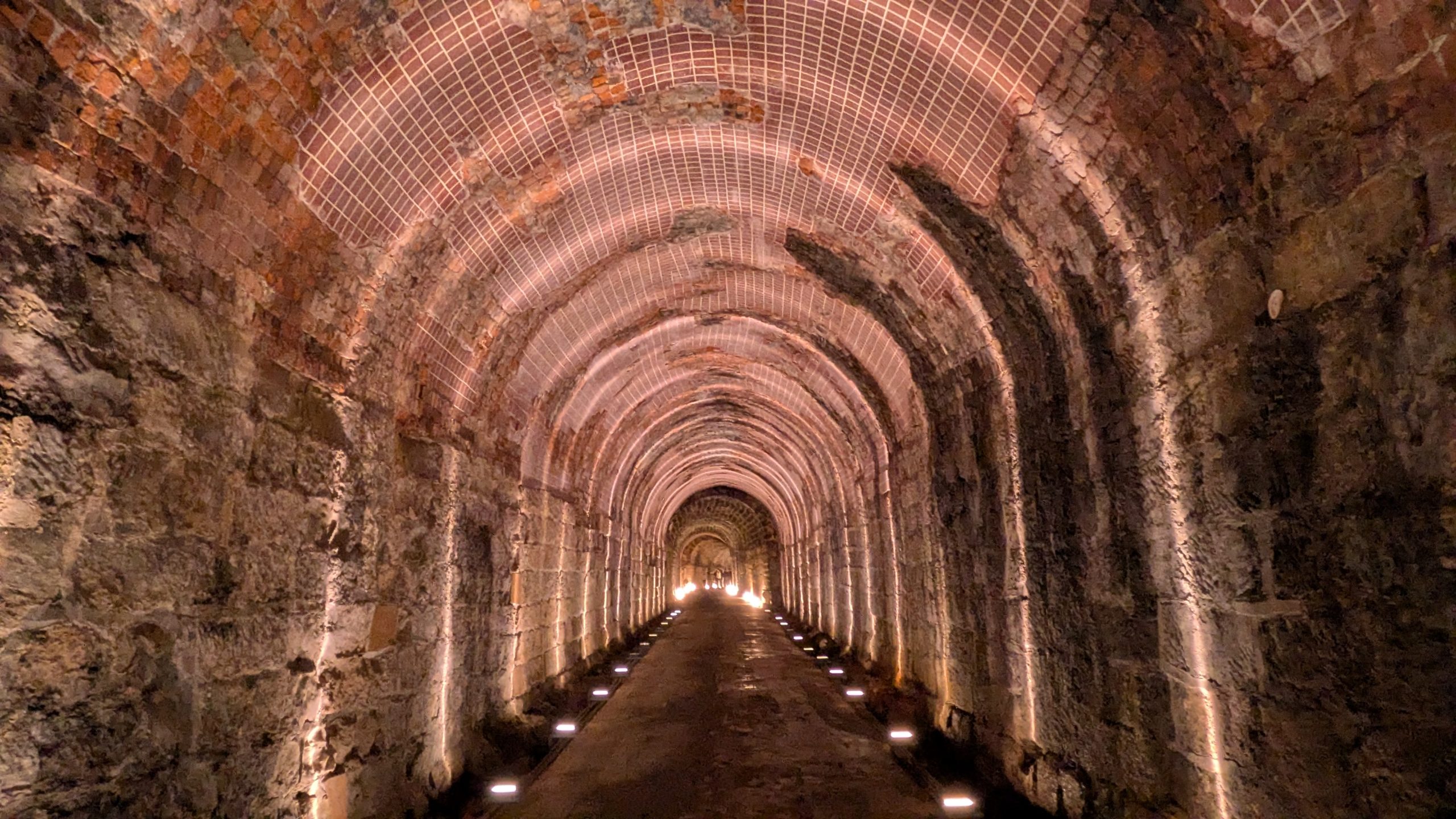 もうまもなく出口ですが、ここで2回も構造が変わります。第五区間は第三区間と同じタイル状になりますが、すぐに第六区間へ入り元のレンガへ