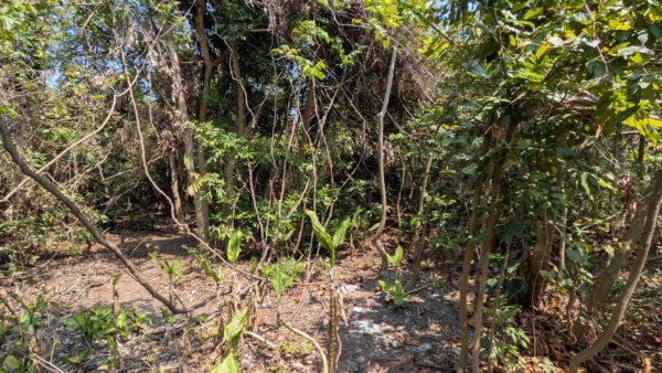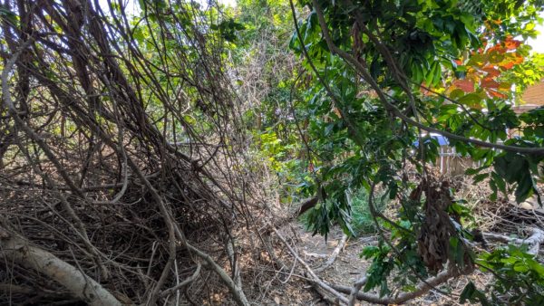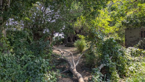 Googleマップの案内に従って未舗装道路を回り込んでいくと倒木の後ろに何か見えます