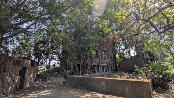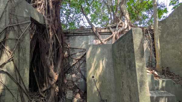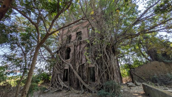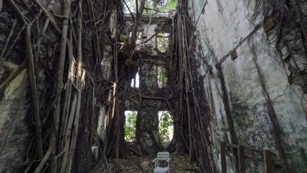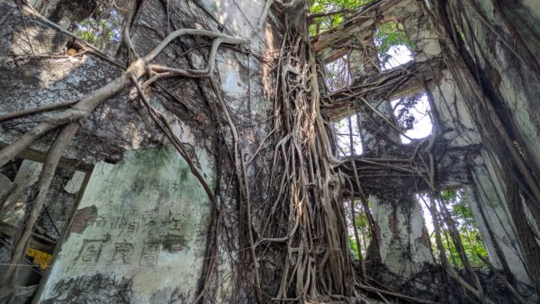 左の建物は入れましたが中はがらんどうで壁一面に木の根がびっしり