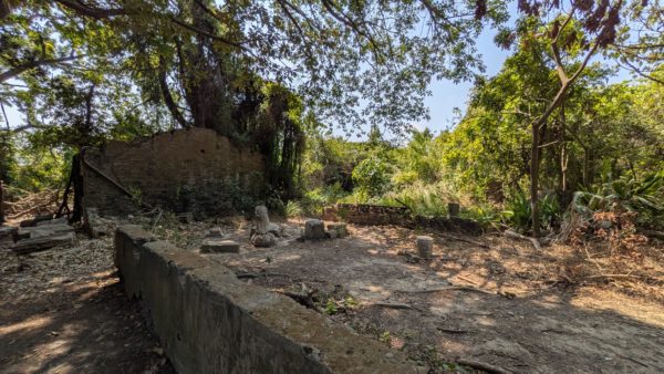 今となってはどのような使われ方をしていたのかわかりませんが、大きさからして物置でしょうか。階段があるので2階があったようです