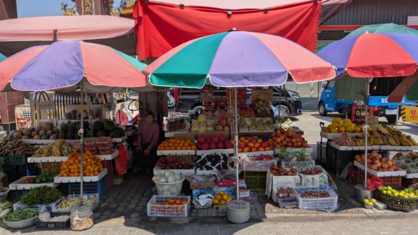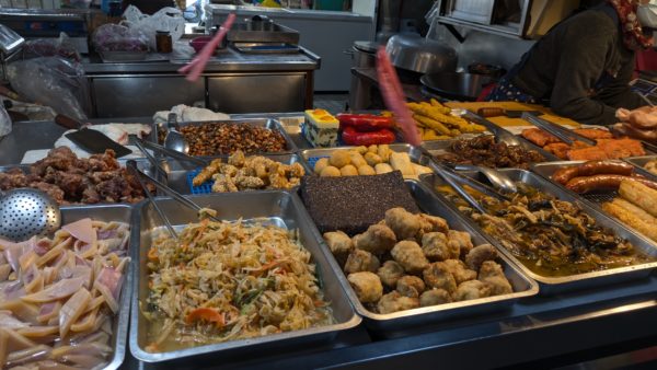市場は民雄駅からすぐの市街地中心部にあります。若干夜市感ある、地方市場らしい雰囲気
