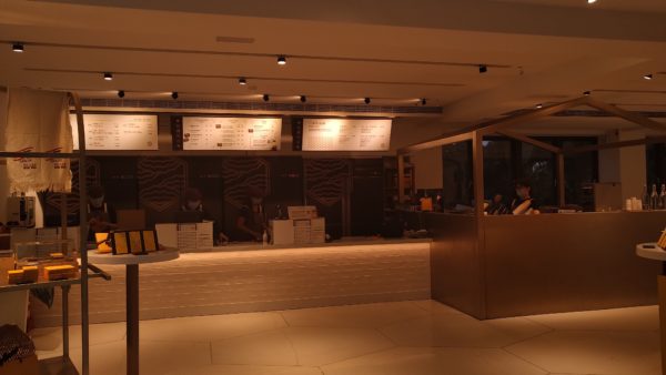 中の様子。向かって左が売り場、中央が会計カウンター、右がイートインスペース。