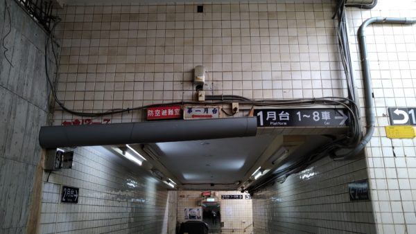 下り階段は日本スタイルな上方の窓に注目。発車案内はもちろん旧型。