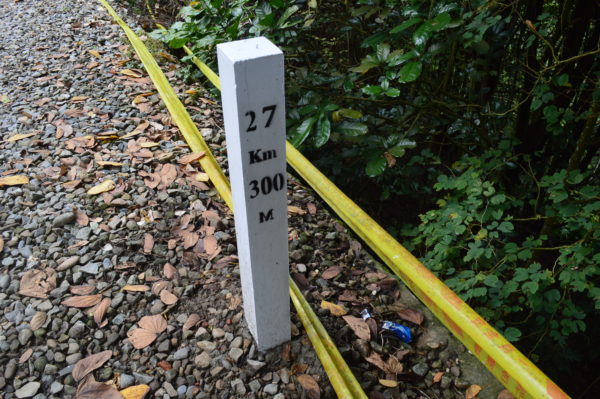 階段を上がって行くと、なんとそこにも先程と同様の線路がありました。まさにここはループ線のど真ん中なわけです。キロポストは28.0なので駅より阿里山寄りということがわかります。