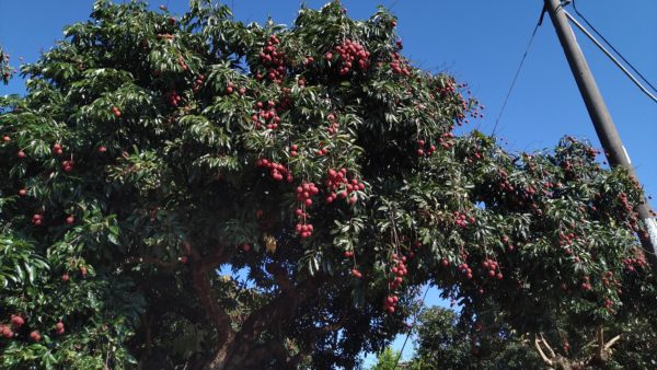 到着直前から車窓に赤い実を付けたライチの木が見え、すでに期待が高まっています。