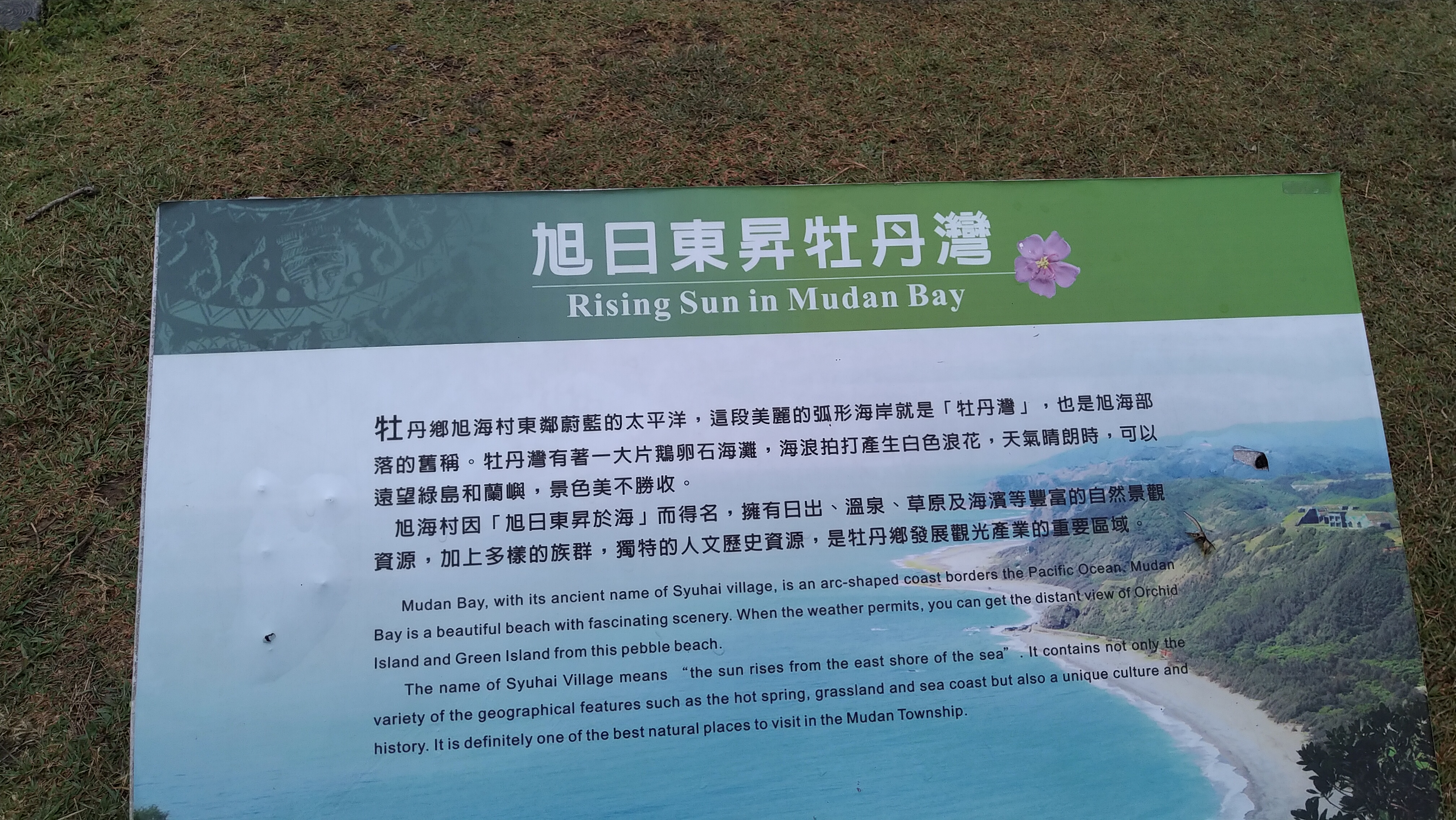 この地域についての解説看板。旭海の地名は「旭日東昇於海(朝日が東の海より昇る)」に由来しています。