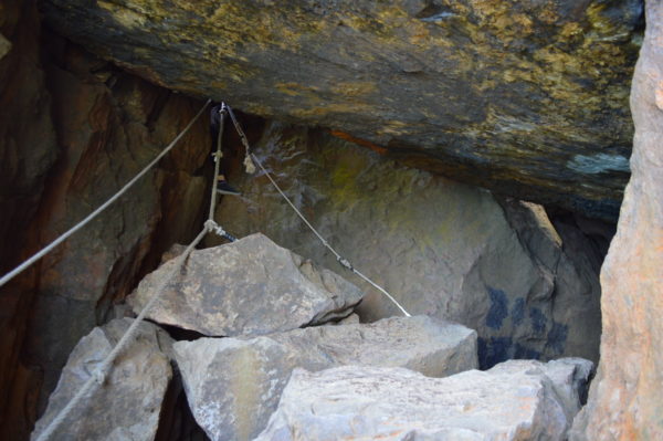 岩の隙間をくぐったりかなり本格的です。行き違いはできないので上り下りで譲り合い。