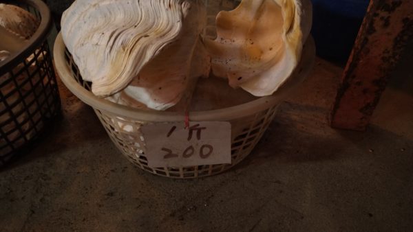 この大きな貝は1斤あたりいくらという市場の野菜みたいな売り方をされてます