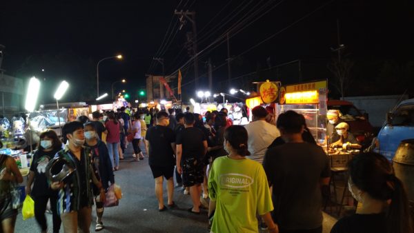 この夜市はL字に展開しており、交差点を曲がって忠勇路へ。こちらも賑やか