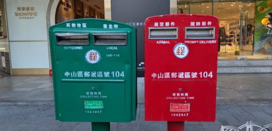 こちらは台湾で一般的に見かけるポストです。緑の普通用と赤の速達・航空便用が並んでおり、それぞれの投入